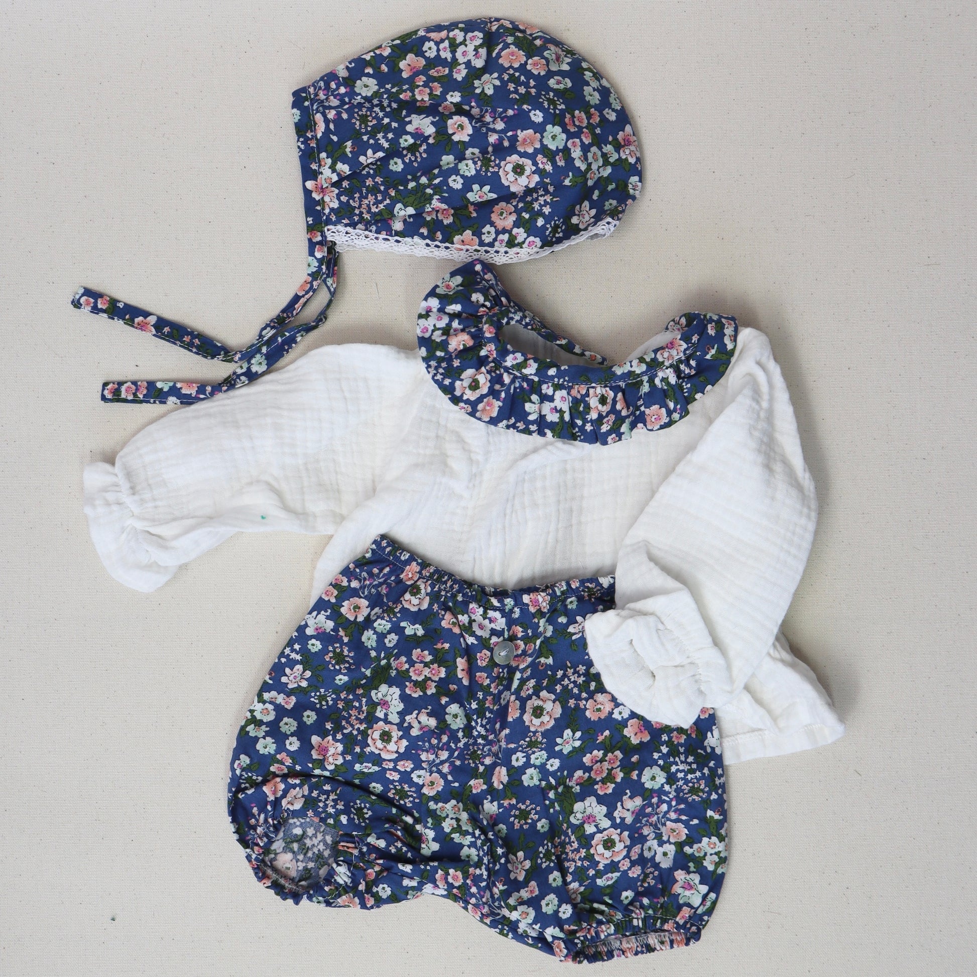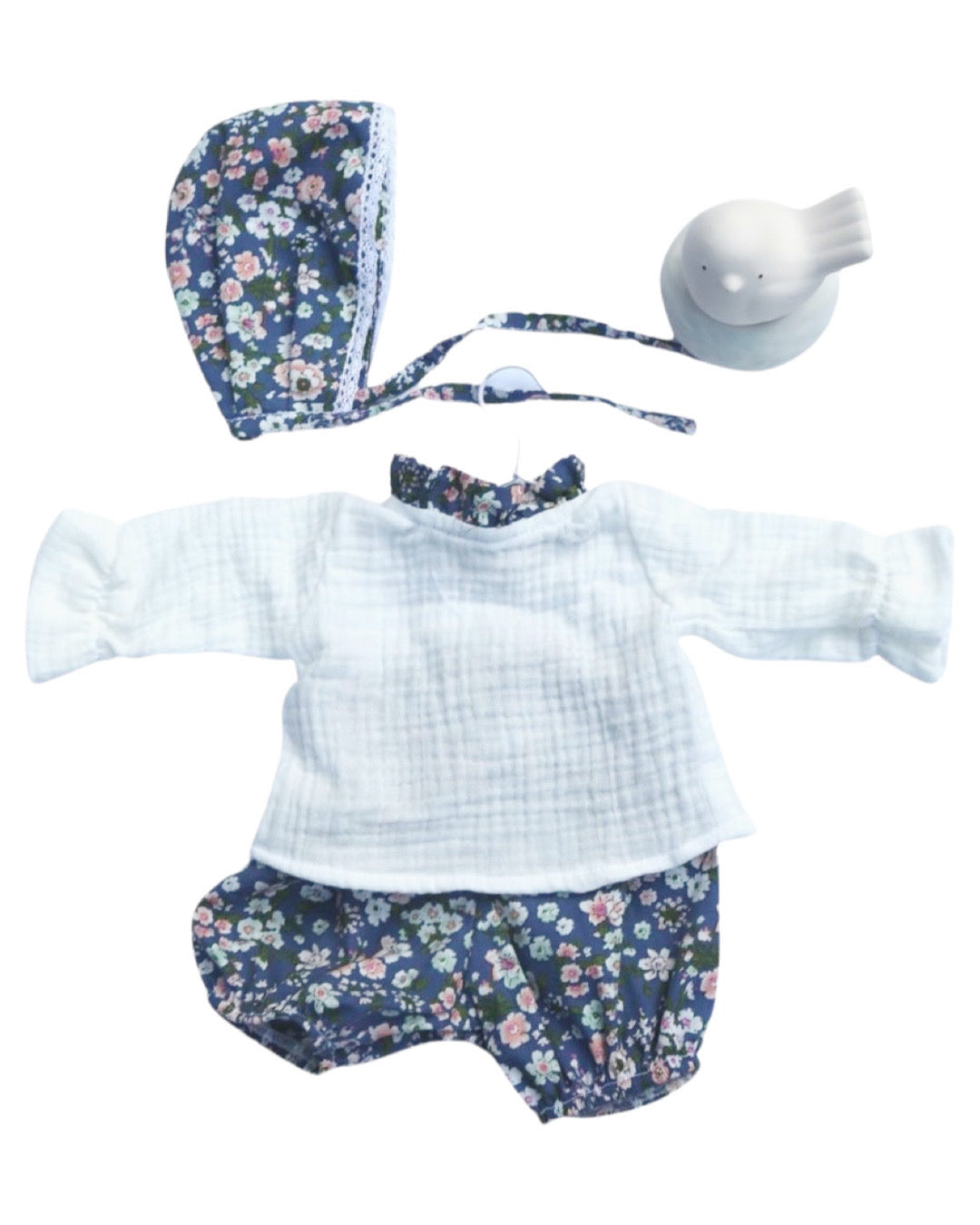 "Viste a tu muñeca con la frescura de nuestro conjunto de flores azules y camisa blanca de baby cotton. Cada pétalo es un toque de encanto, creando un look que destaca en elegancia y estilo. La suavidad de la camisa brinda confort en cada movimiento, convirtiendo cada aventura en un paseo por el jardín de la imaginación. Confeccionado con esmero por nuestros artesanos mexicanos, este conjunto es la expresión perfecta de gracia y comodidad para tu compañera de juegos."