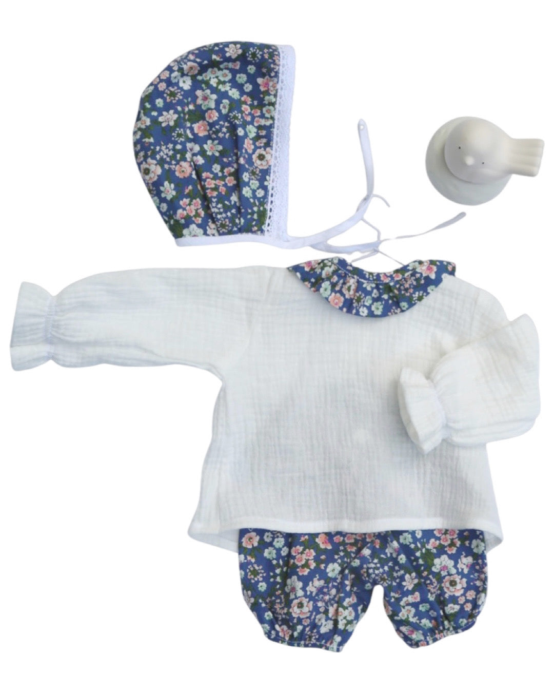 Viste a tu muñeca con la frescura de nuestro conjunto de flores azules y camisa blanca de baby cotton. Cada pétalo es un toque de encanto, creando un look que destaca en elegancia y estilo. La suavidad de la camisa brinda confort en cada movimiento, convirtiendo cada aventura en un paseo por el jardín de la imaginación. Confeccionado con esmero por nuestros artesanos mexicanos, este conjunto es la expresión perfecta de gracia y comodidad para tu compañera de juegos.