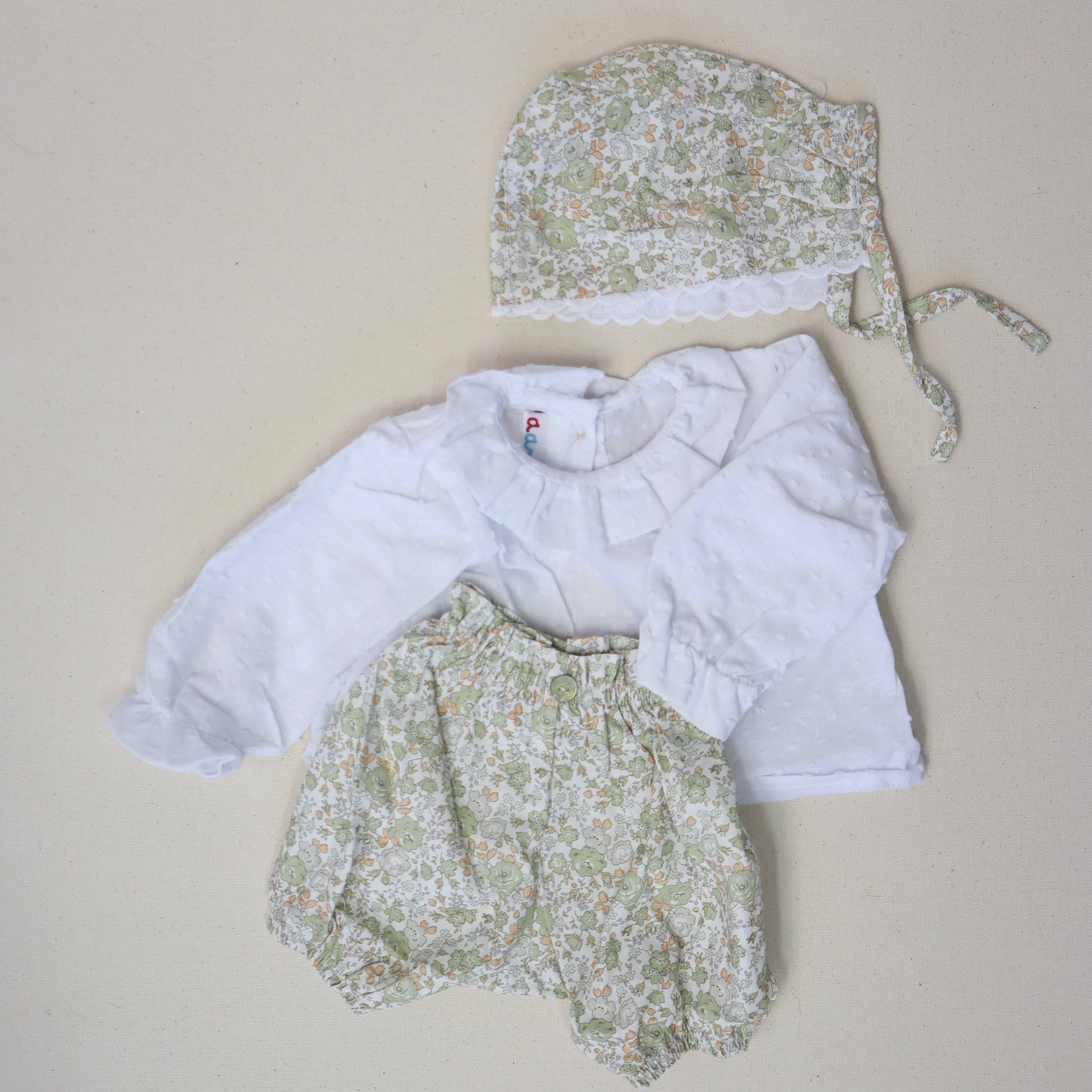 Viste a tu pequeña con la frescura y elegancia de nuestro conjunto de flores verdes, donde la camisa blanca de plumetti y tela española añade un toque distintivo. Cada pétalo es un susurro de naturaleza, creando un look que fusiona comodidad y sofisticación. La calidad de la tela española realza cada detalle, proporcionando a tu pequeña un estilo único y encantador. Elaborado con cuidado por nuestros artesanos mexicanos, este conjunto es la elección perfecta para ocasiones especiales llenas de gracia y distinción.