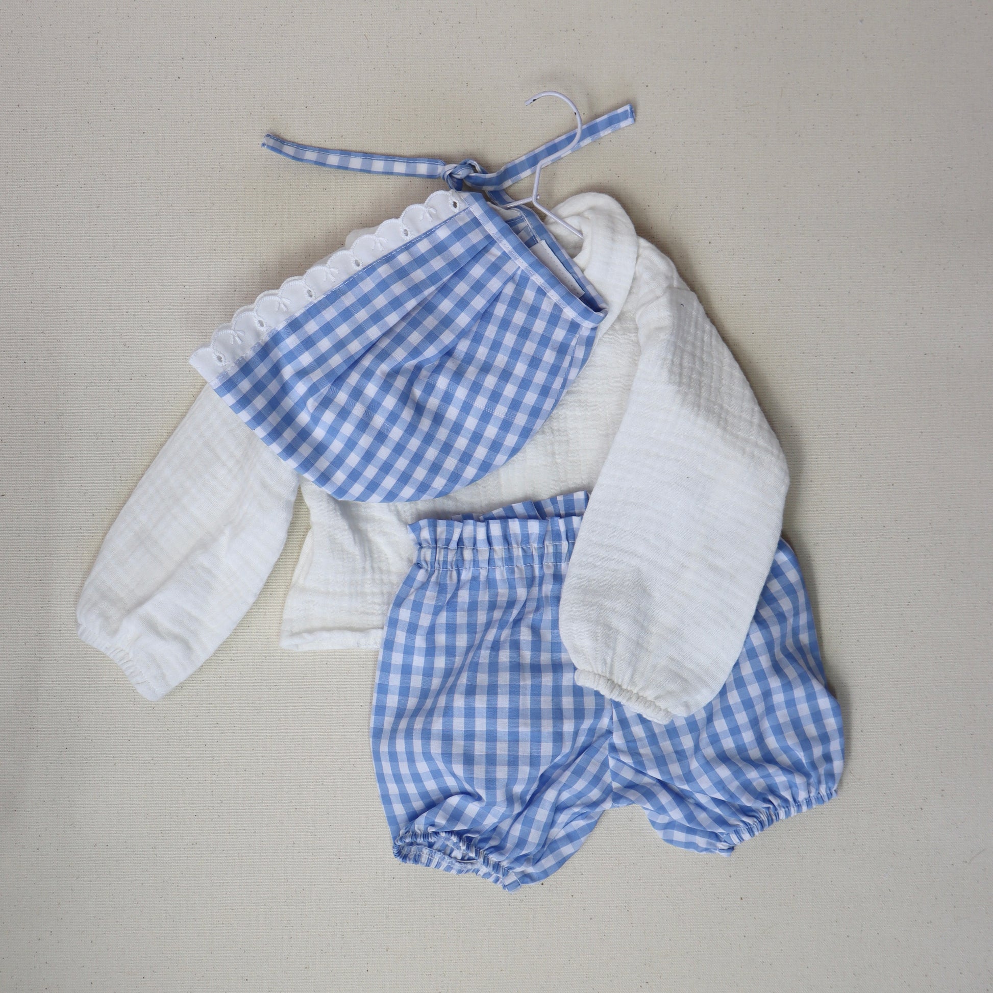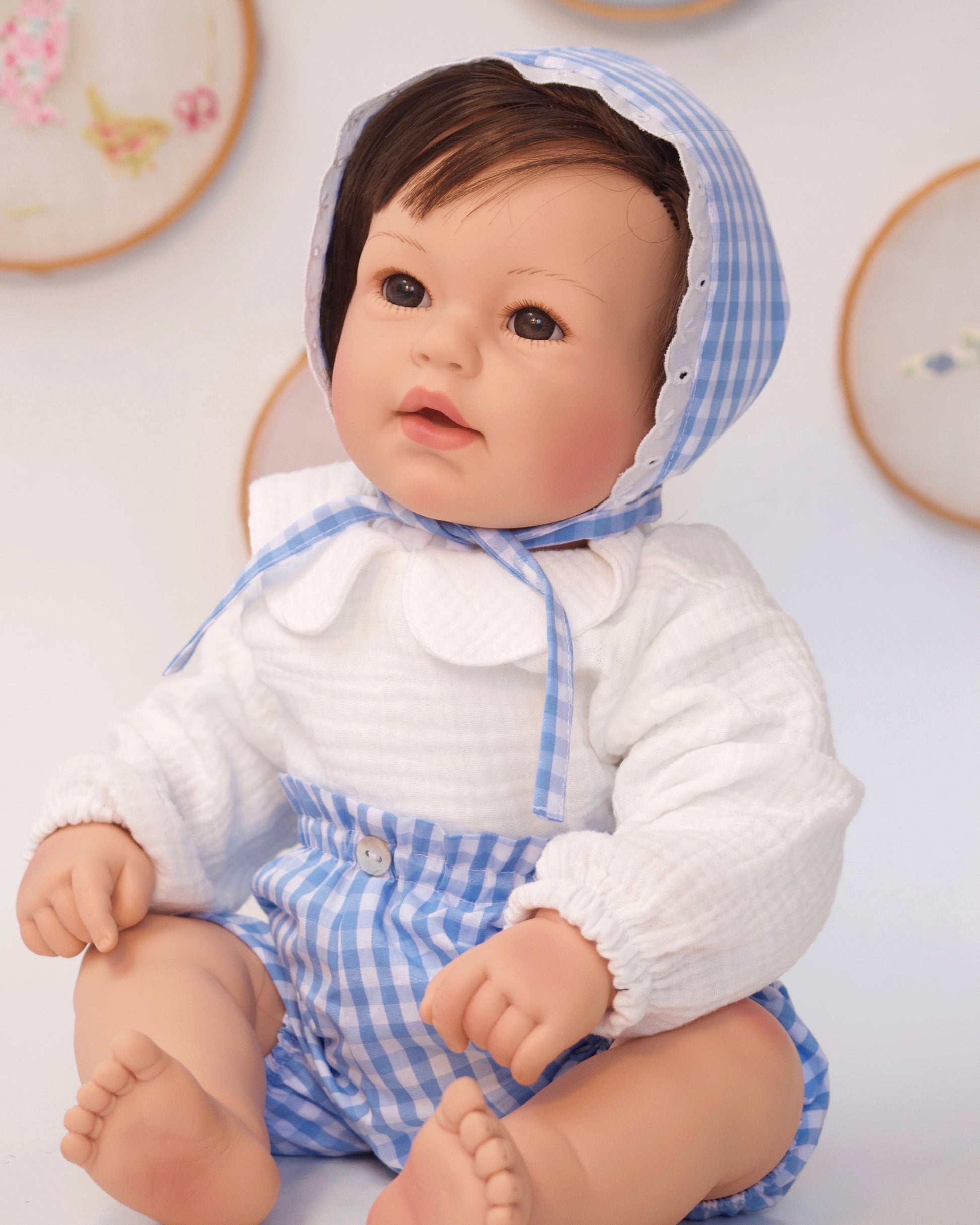 Viste a tu muñeca con la atemporalidad y encanto de nuestro conjunto de cuadros azules, complementado con la suavidad inigualable de la camisa blanca de baby cotton. Cada cuadro es una expresión de estilo clásico y versatilidad, creando un look que resalta la frescura y la comodidad. Elaborado con cariño por nuestros artesanos mexicanos, este conjunto es la elección perfecta para darle a tu pequeña un toque elegante y casual en cualquier ocasión.